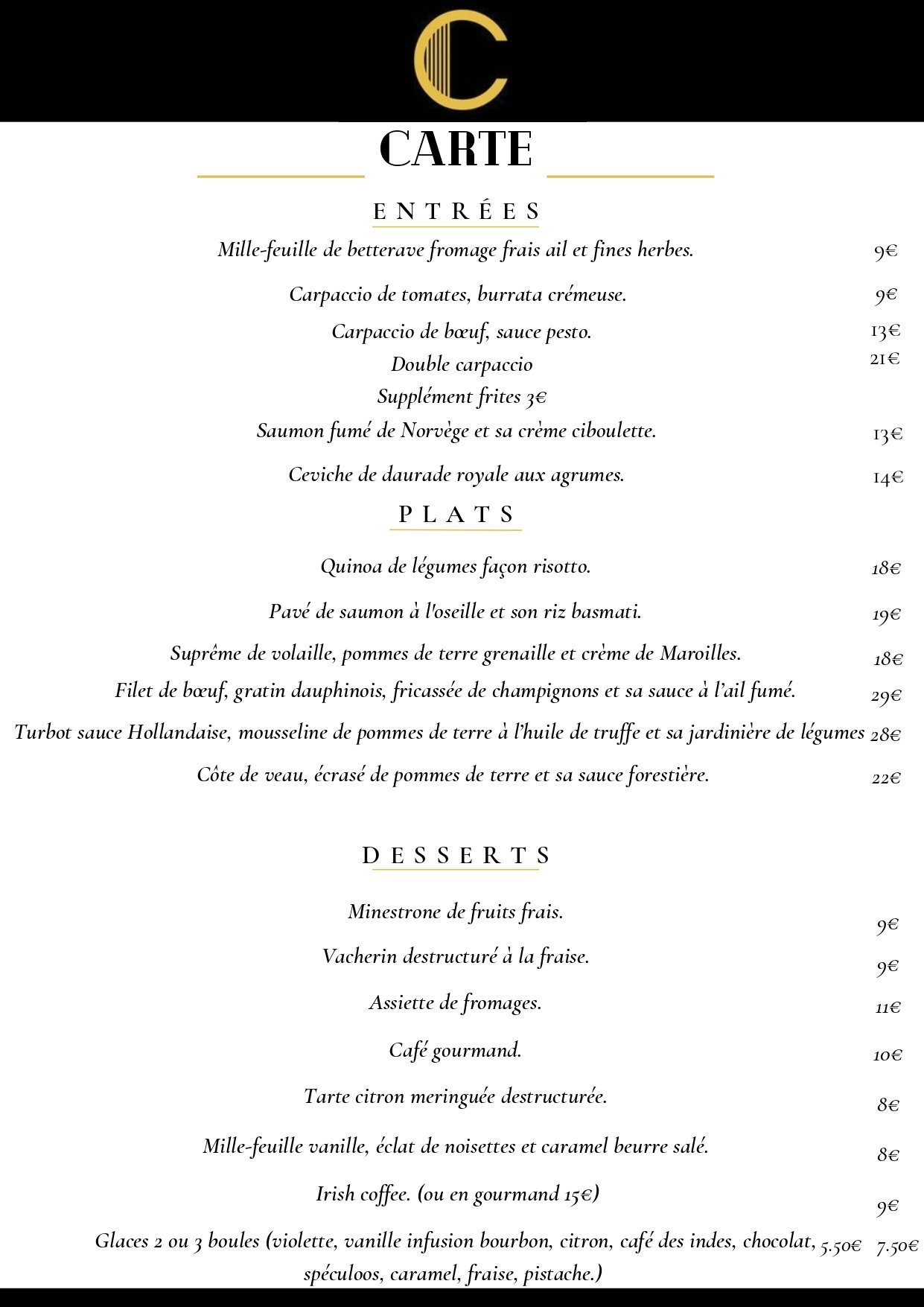 LA CARTE DU MOIS